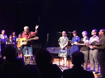 MD performing with the Old Town School Folk Chorus: Ronna Baron, Michelle Billingsley, Samantha Kyrkostas, Larry Lindeman, Carolyn Meadows, Jim Picard, Daniel Pierce, Mary Schons, Suzanne Strom & Marge Weber. April 24, 2016.