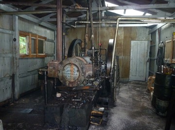The steam engine inside the building that turns the big wheel in the other room. Photo by Don Heath.