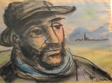Chicago area artist Peg Lipschutz has created thousands of chalk drawings inspired by American folk music, including "Poor Wayfaring Stranger" in 2003.